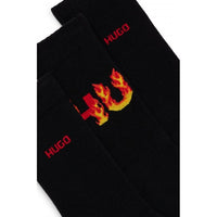 3-Pack Flames Logo Ribbed Sports Socks, Black