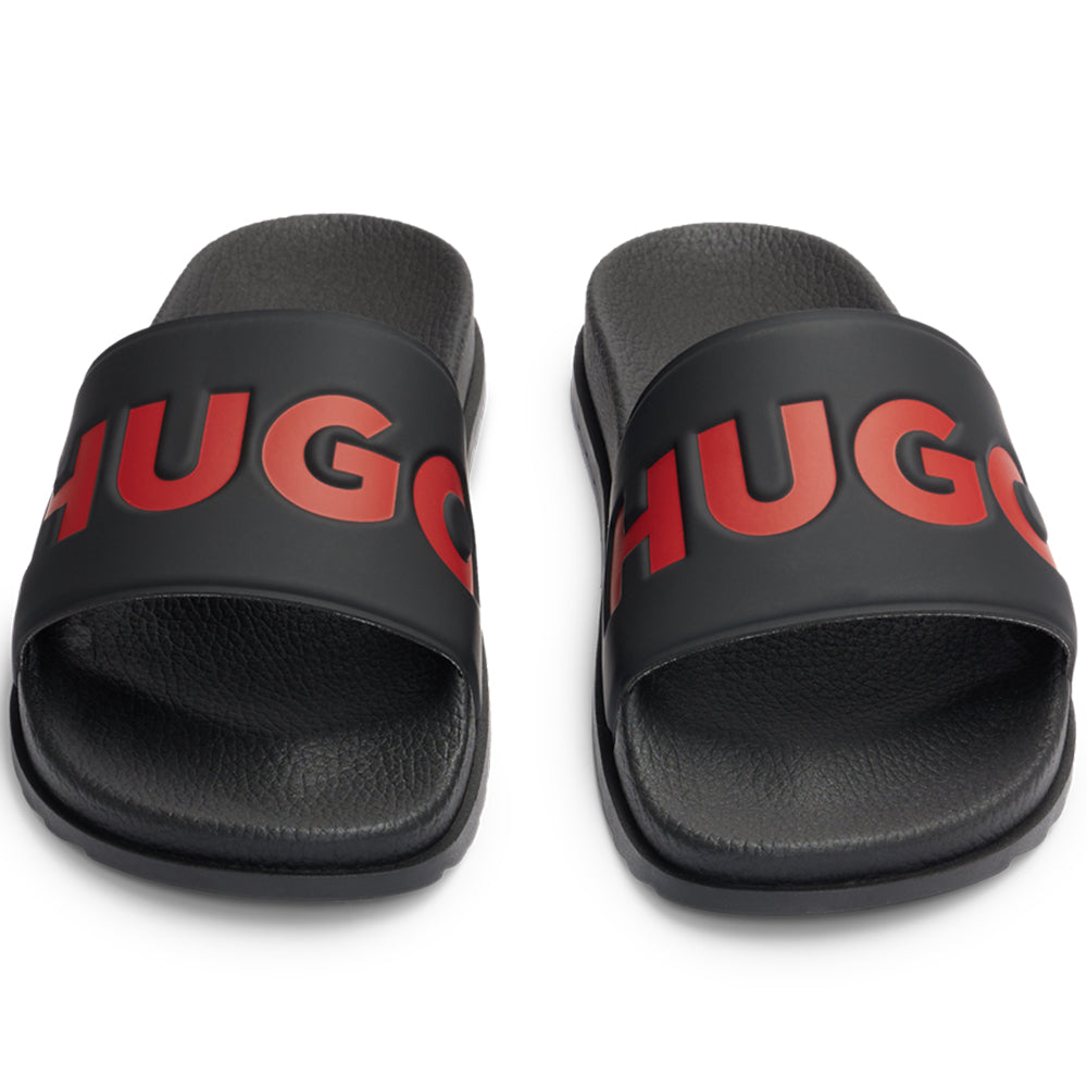 Statement slides by HUGO, designed in lightweight materials with a logo across the strap.