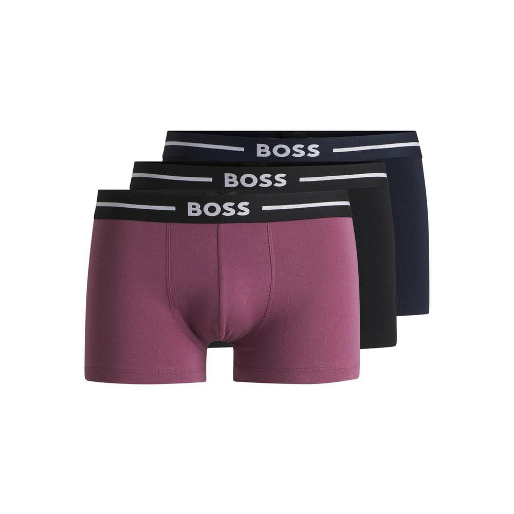 BOSS 3-Pack Stretch-cotton Trunks with Logo Waistbands, Black/Navy/Purple