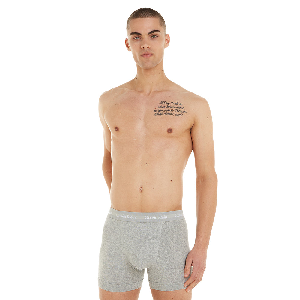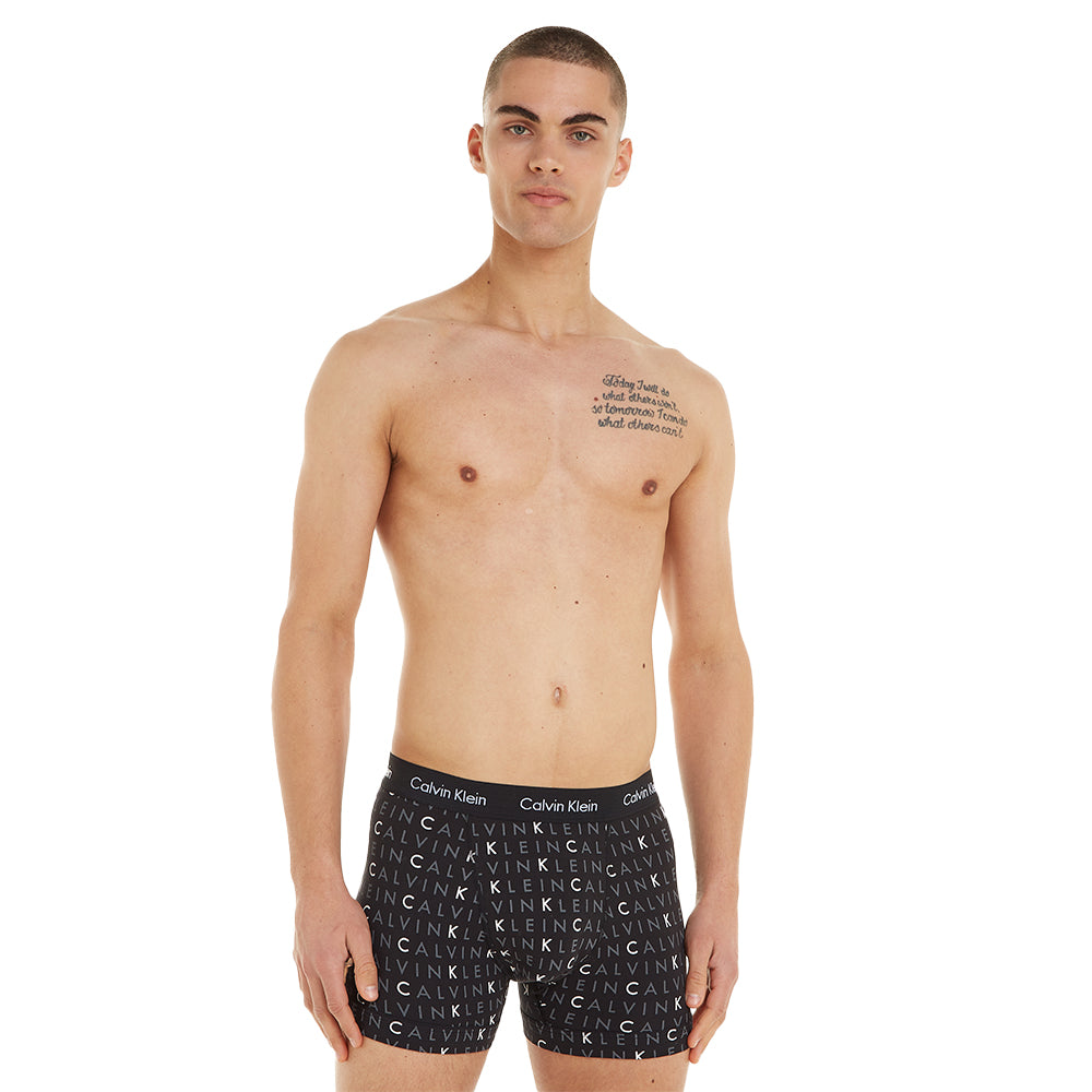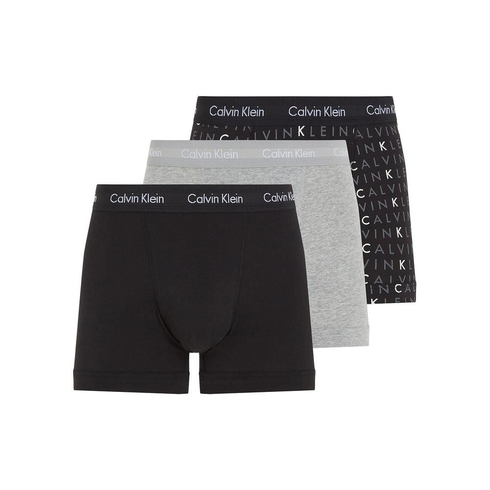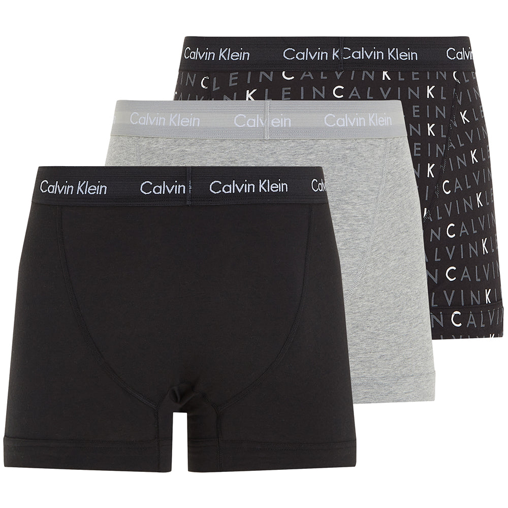 Calvin Klein 3-Pack All-Over Logo Cotton Stretch Boxer Trunks, Black/Grey