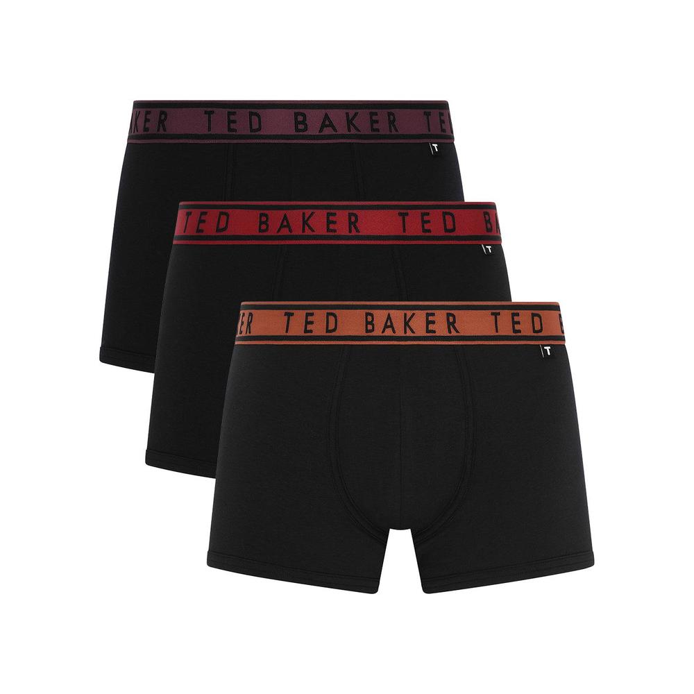 Ted Baker 3-Pack Contrast Waistband Boxer Trunks, Black