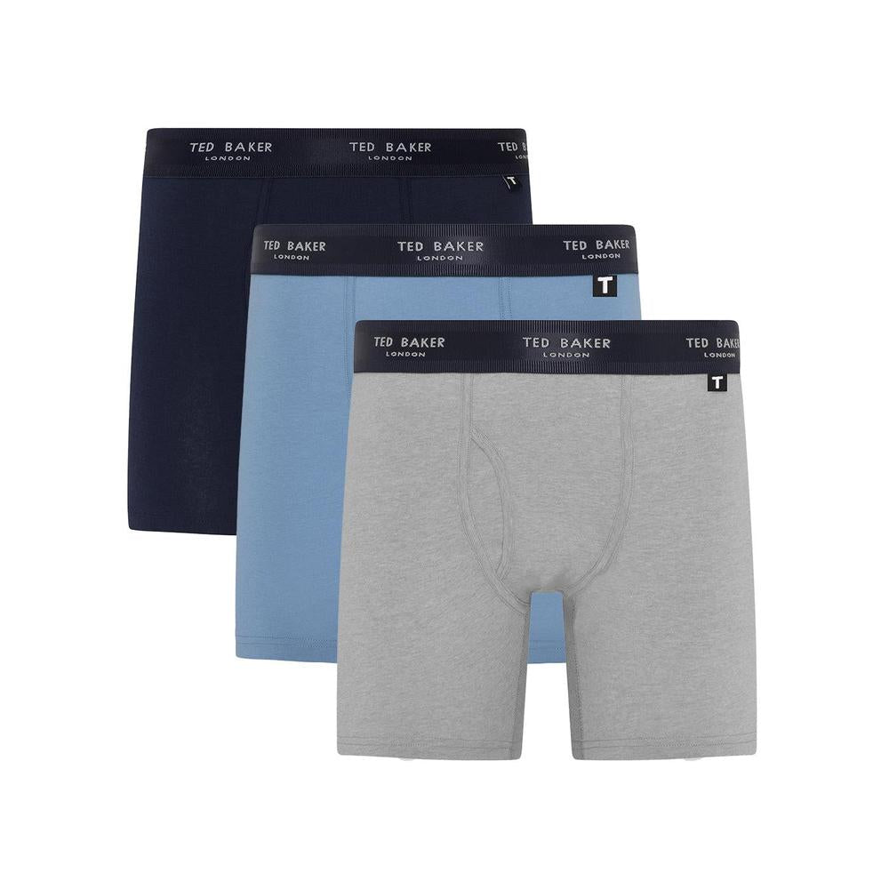 Ted Baker 3-Pack Core Boxer Briefs, Blue/Grey/Navy