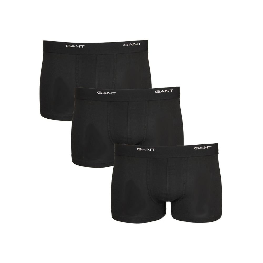 3-Pack Core Boxer Trunks, Black. GANT's underwear delivers supportive, comfortable fits in high-quality fabrics. Made from a lightweight cotton stretch jersey, these 3-pack of trunks are a core GANT basic. They have a slim fit, regular waist and short leg length. The jacquard knitted elastic waistband is detailed with small repeating GANT logos.