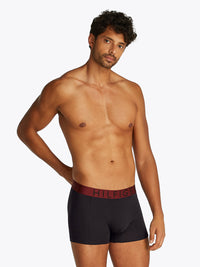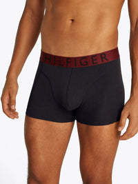 Tommy Hilfiger 3-Pack Large Logo Boxer Trunks, Black with waistbands in Poppy Pink/Medium Red/Deep Rouge