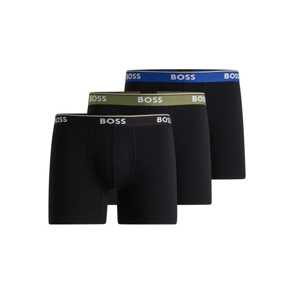 BOSS 3-Pack Power Boxer Briefs, Black. Three pairs of boxer briefs by BOSS Menswear, with signature stripes and repeat logos on the waistband. Each pair comes in comfortable stretch-cotton jersey.
