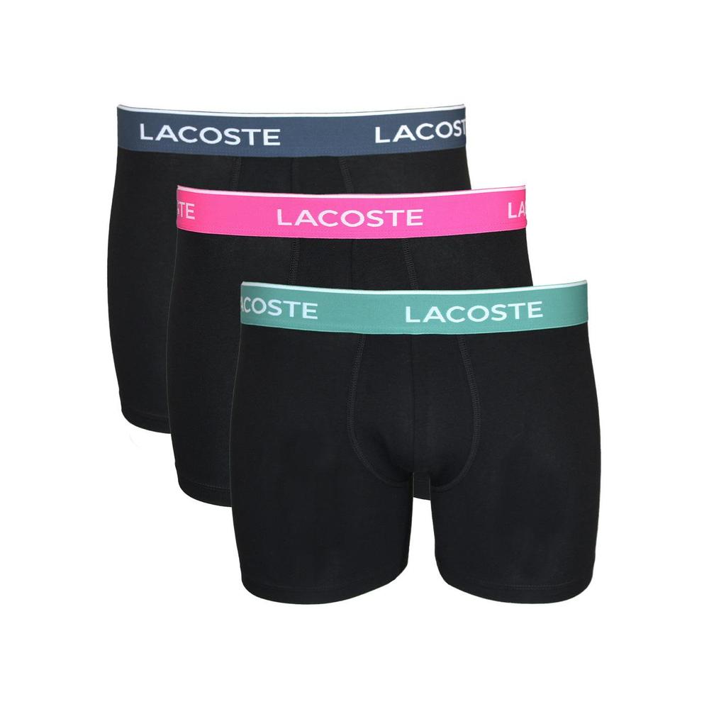 Lacoste 3-Pack Stretch Cotton Boxer Briefs, Black/Falcon/Spruce/Malva