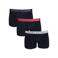 Tommy Hilfiger 3-Pack Everyday Essentials Boxer Trunks, White/Medium Red/Desert Sky
