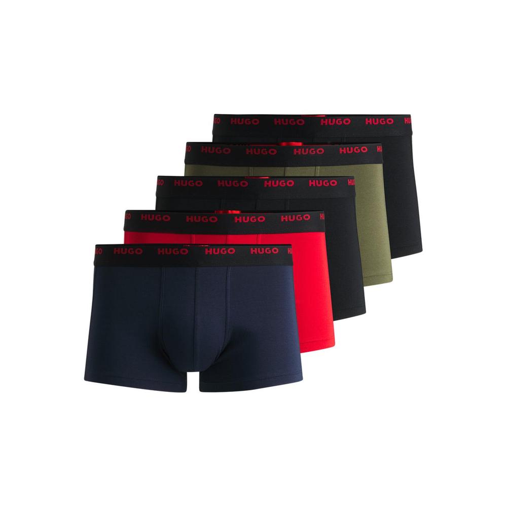 HUGO 5-Pack Boxer Trunks, Black/Khaki/Red/Navy
