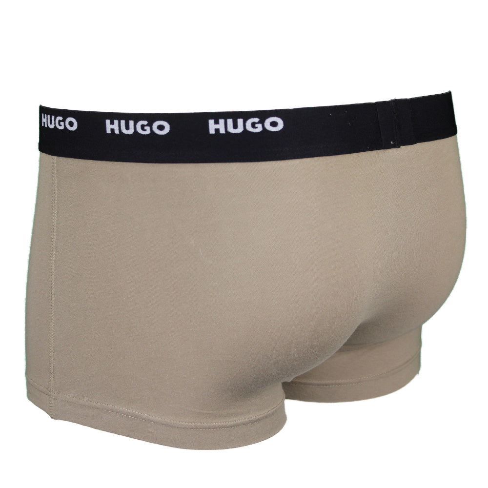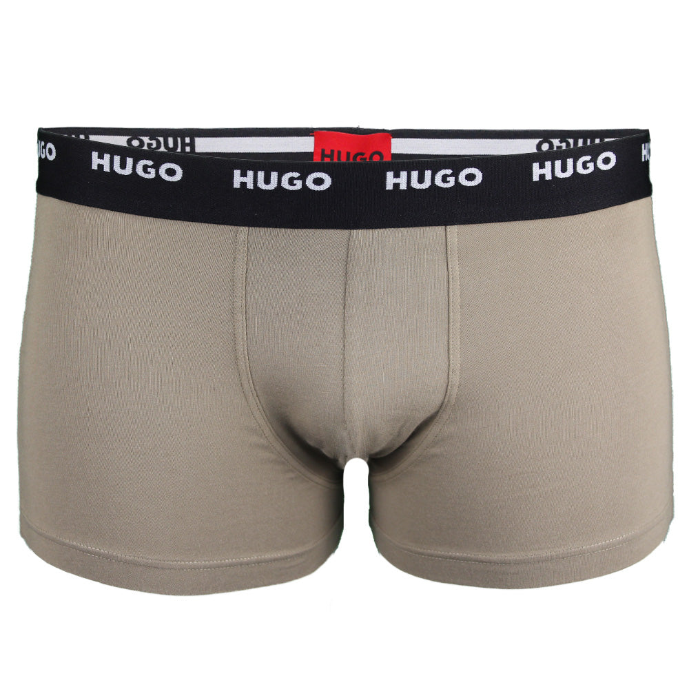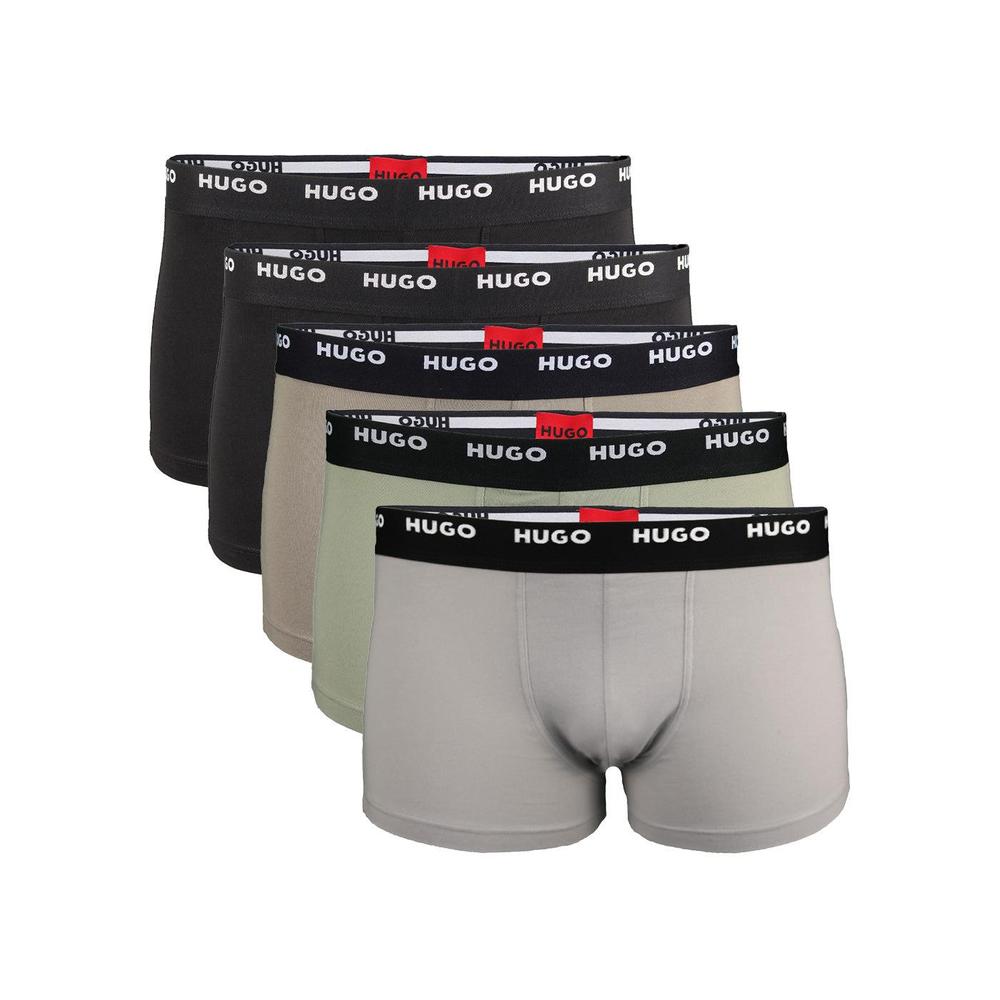 HUGO 5-Pack Cotton Stretch Boxer Trunks, Black/Khaki. Five pairs of trunks by HUGO Menswear. Crafted in stretch jersey, each pair has a regular-rise waistband with repeat HUGO logos.