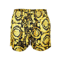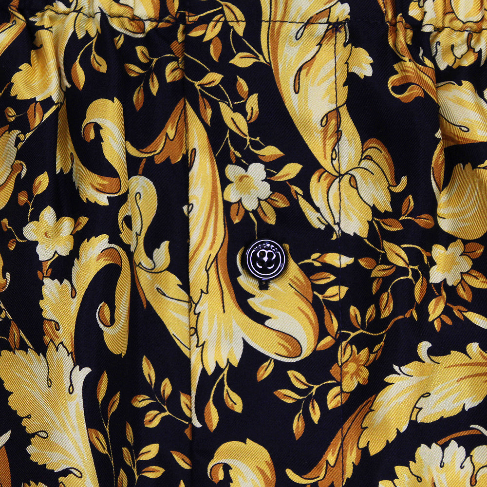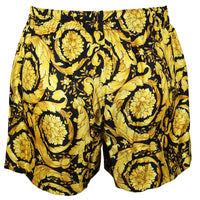 Silk Barocco Print Pyjama Shorts, Black/Gold