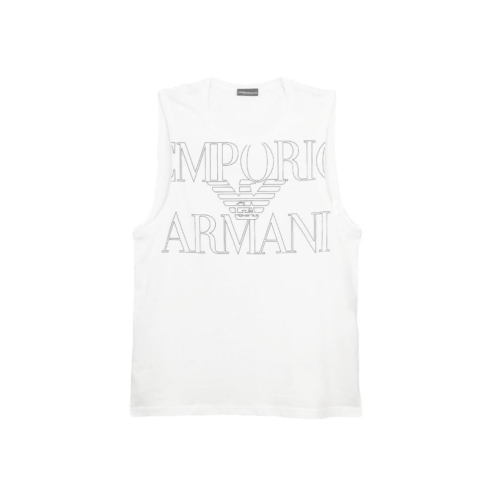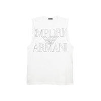 Emporio Armani vest in white with large logo on front, ideal for beach or gym.