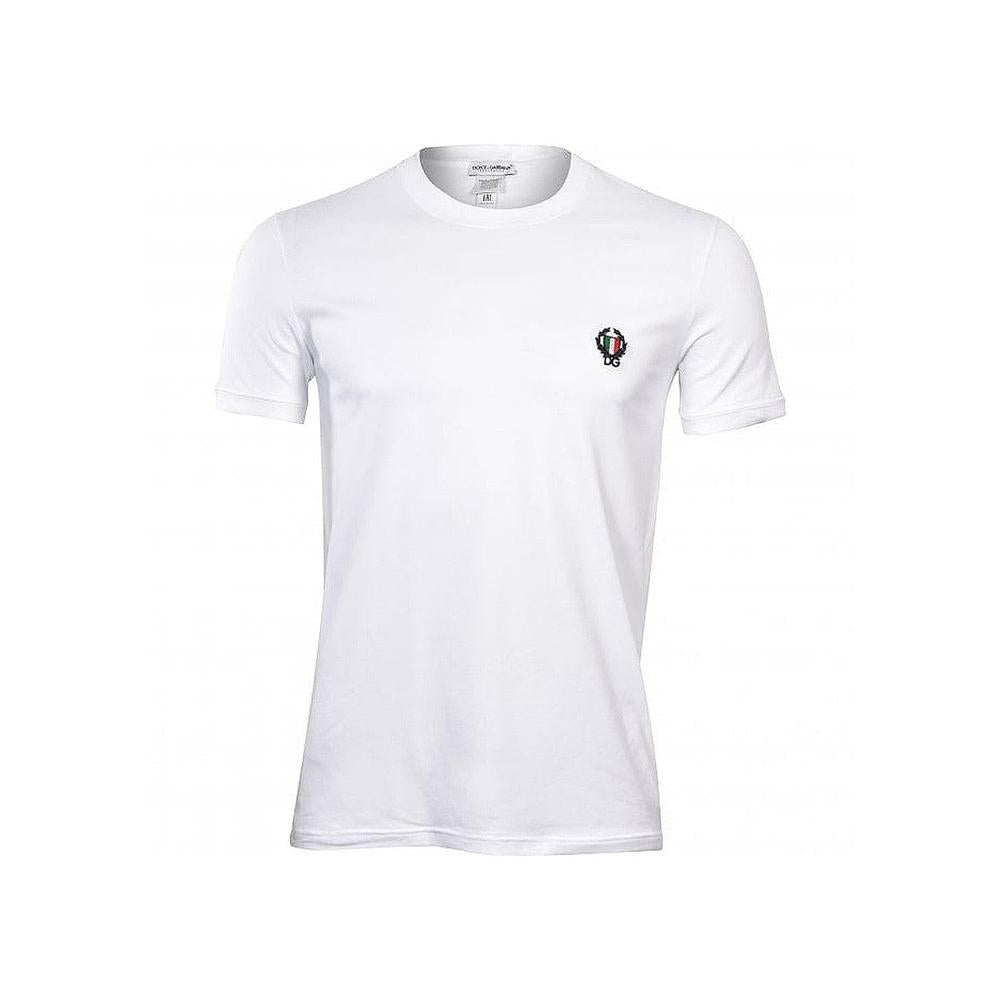 Dolce & Gabbana Crew-Neck Stretch Cotton T-Shirt with Crest, Optical White