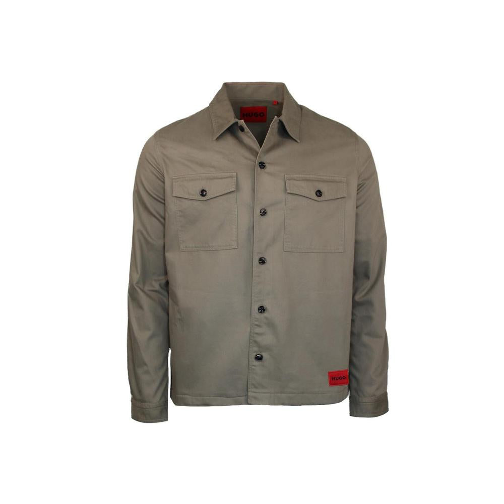 HUGO Enalu Over Shirt/Shacket, Medium Brown. A casual overshirt by HUGO, cut to a short length. Featuring signature details and patch pockets, this oversized-fit piece is crafted in soft gabardine. This product is partly made with organic cotton.