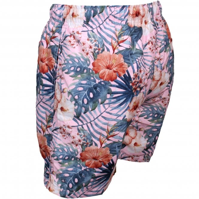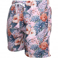 Hawaiian Flowers Print Swim Shorts, Maui Pink