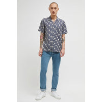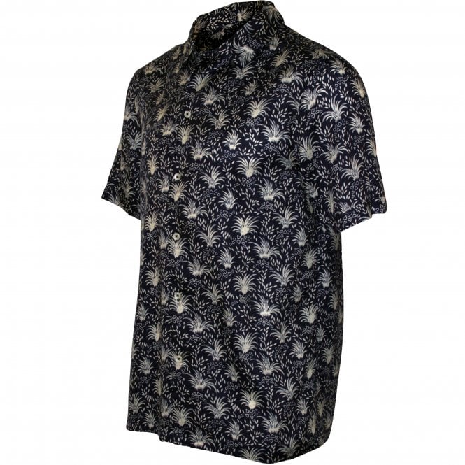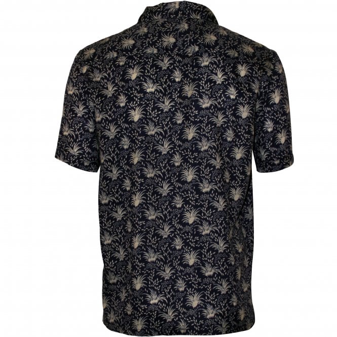 Palm Print Lyocell Short-Sleeve Shirt, Indigo