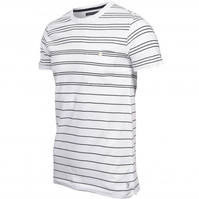 Striped Crew-Neck Pocket T-Shirt, White/navy