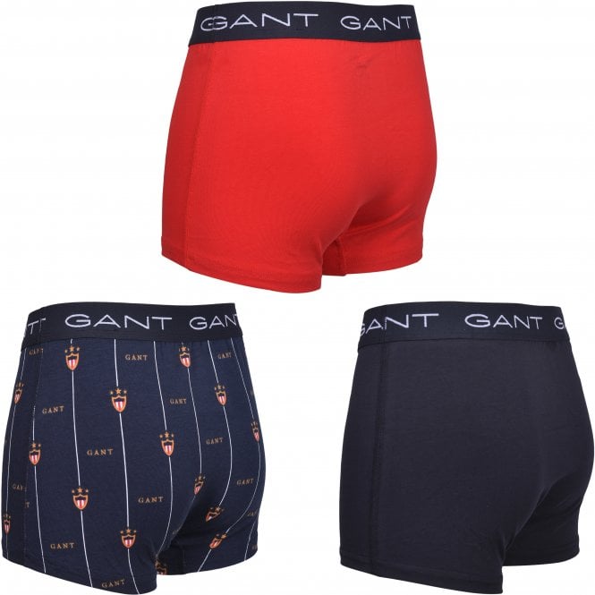 3-Pack Banner Shield Logo Boys Boxer Trunks, Navy/red