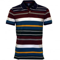 GANT Multi Stripe Pique Rugger Polo Shirt, Burgundy/Blue