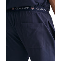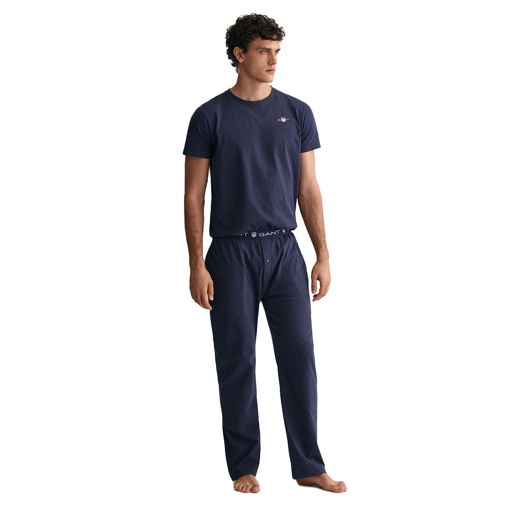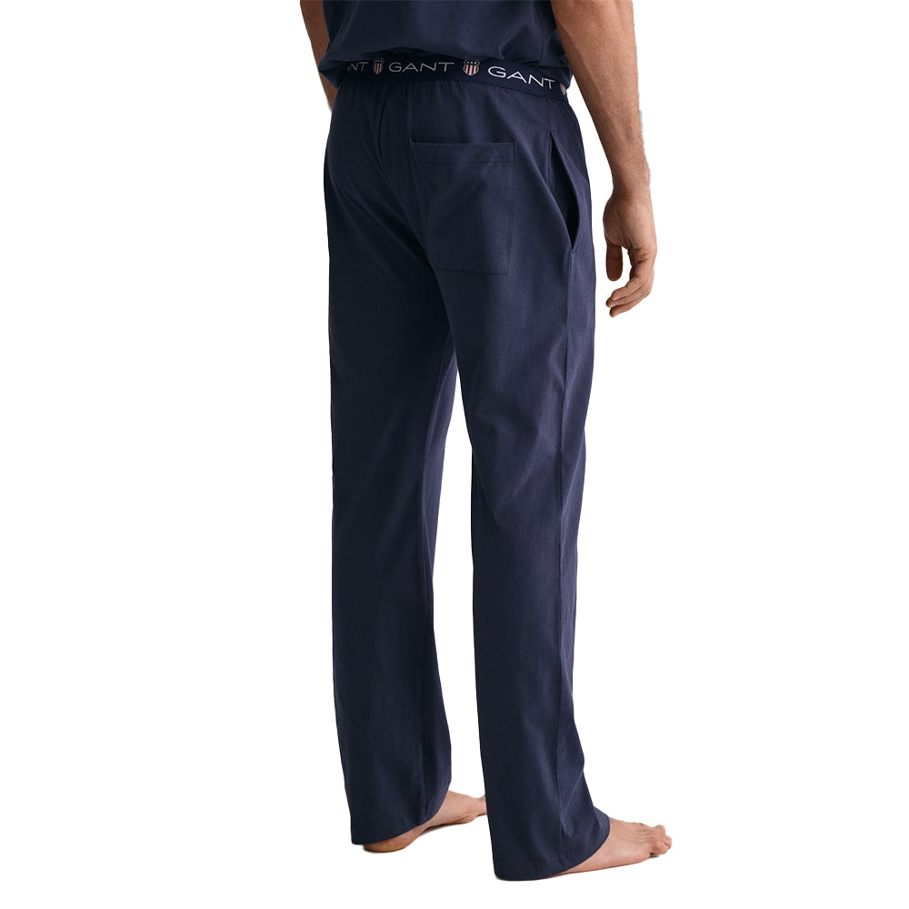Crafted in a soft jersey fabric, these solid pajama pants are cut for a regular fit. They feature an open fly with a button closure, side pockets, one back pocket and an elasticated jacquard waistband with repeating GANT shield graphics. Wear with the matching pajama T-shirt for a coSy, coordinated set.