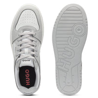 Hugo Hadrian Tenn Trainers, Open Grey. In synthetic coated fabric for a modern look, these HUGO Menswear trainers have an everyday low profile. Perforated details. Two-tone effect.