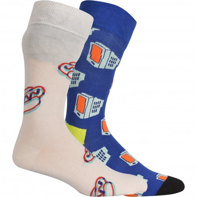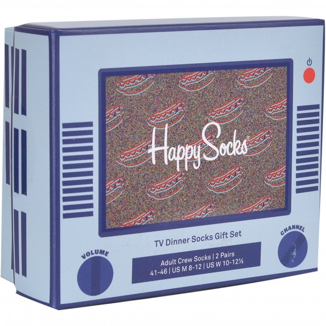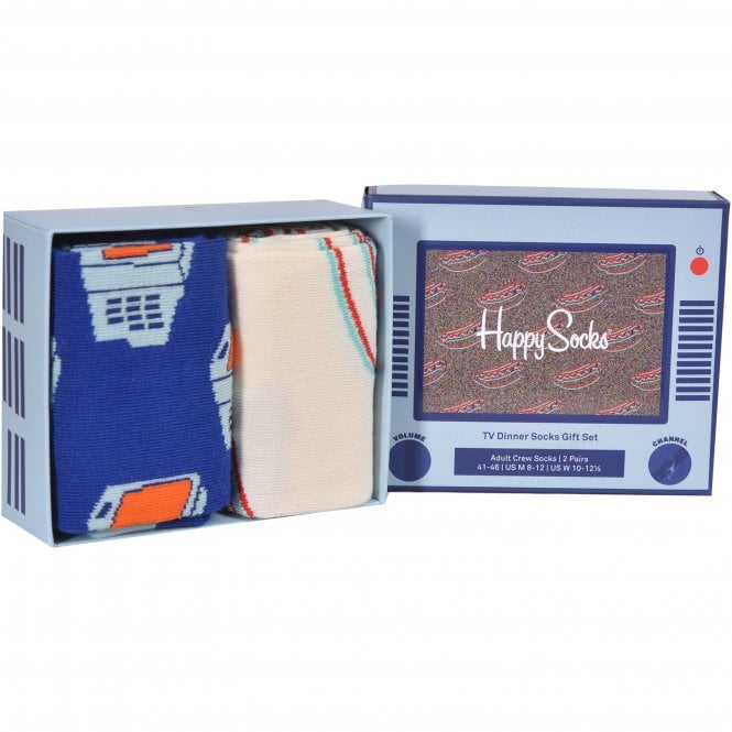 2-Pack TV Dinner Socks Gift Box, White/Blue