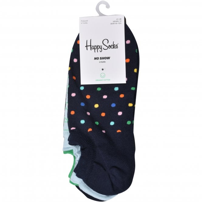 Happy Socks 3-Pack Dot Lover No-Show Trainer Socks, Navy/blue