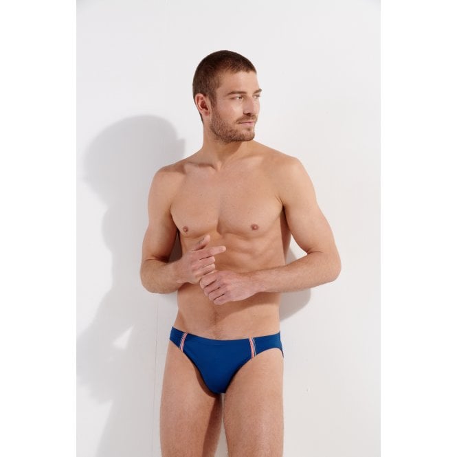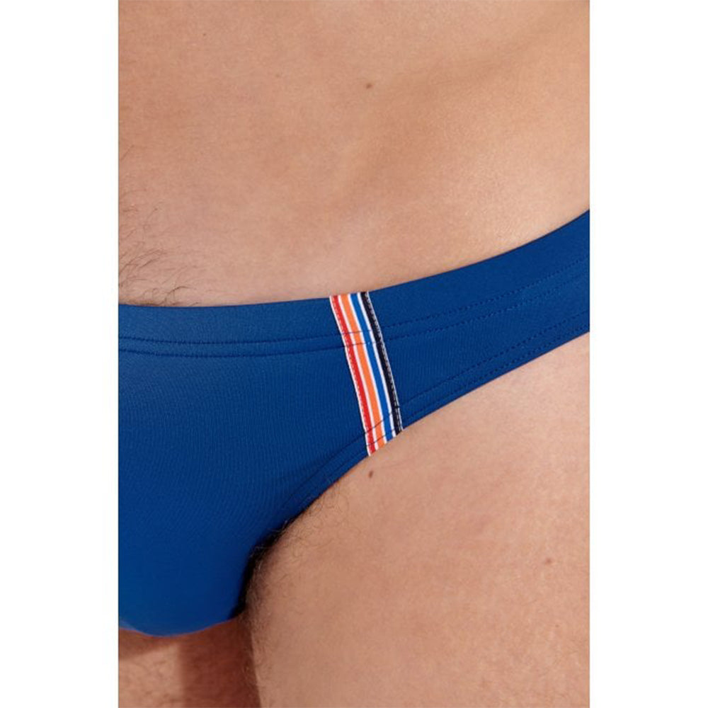 The NAUTICAL CUP men's swim brief has been designed in a preppy style. It's printed in a solid color and features two contrast-colored elastic bands sewn on either side of the central shell.