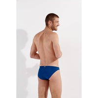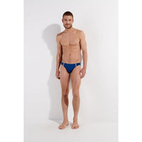 These men's swim briefs are cut in a micro shape. It's indented at the hip, with a waistband thinner than the brand's other swim brief models. This micro swimsuit shape gives flexibility and freedom of movement, it also reveals more of the anatomy, reinforcing the sexy look of the swimsuit and the wearer.