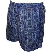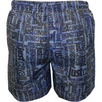 Jeans-effect Faded All Over Logo Print Swim Shorts, Blue