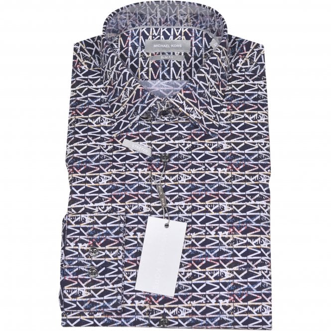 Cotton MK Colour Splash Logo Print Slim-Fit Shirt, Multi