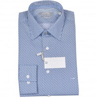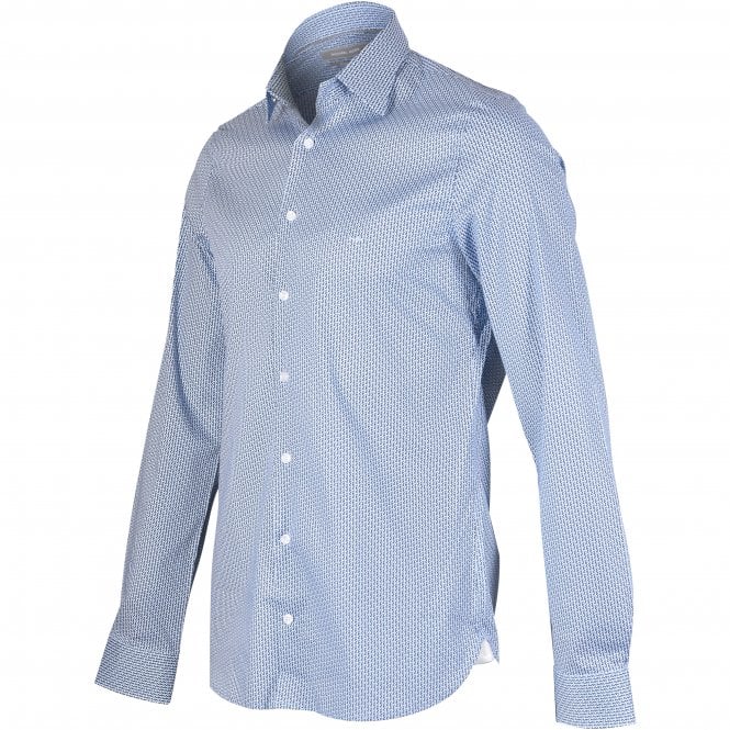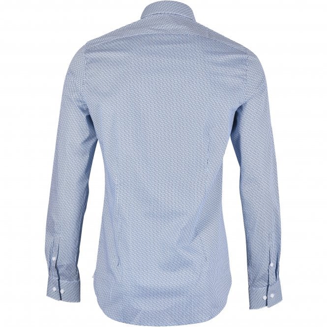 Vertical Logo Print Cotton Stretch Slim-Fit Shirt, Blue