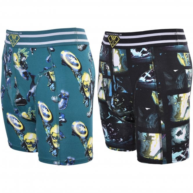Boys 2-Pack Comic Strip Boxer Briefs, Green/Black