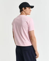 GANT Regular Shield T-Shirt, California Pink. Featuring a small-scale shield graphic embroidered at the chest, this T-shirt is crafted from cotton with a fine rib at the neckline for ultimate comfort.