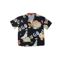 Hugo Relaxed Fit short sleeve beach shirt, Black with striking beach themed pattern.