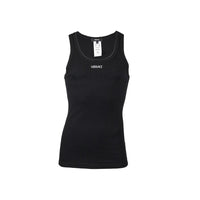 A cotton-blend ribbed tank undershirt featuring a Versace logo embroidery.