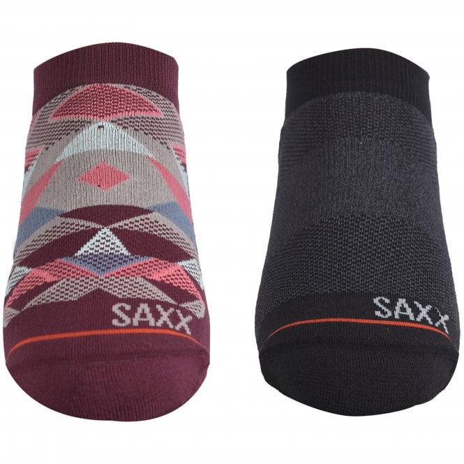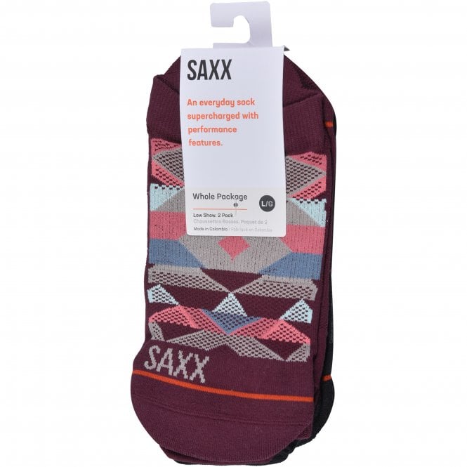 2-Pack Whole Package Geo Pattern Liner Socks, Black/Burgundy