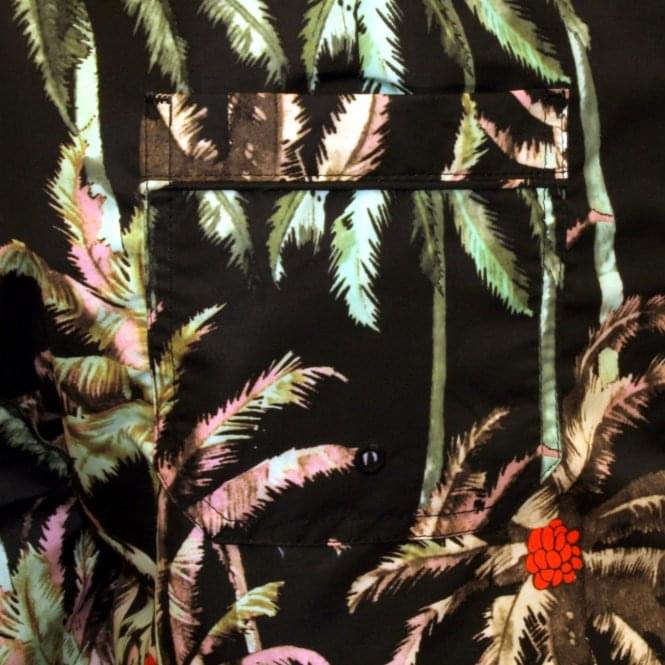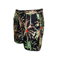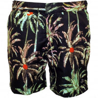 Allover Palm Print "Pool Side" Swim Shorts, Black/green