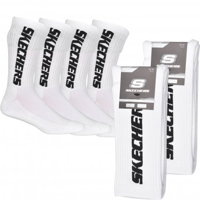 4-Pack Vertical Logo Cushioned Sports Socks, White