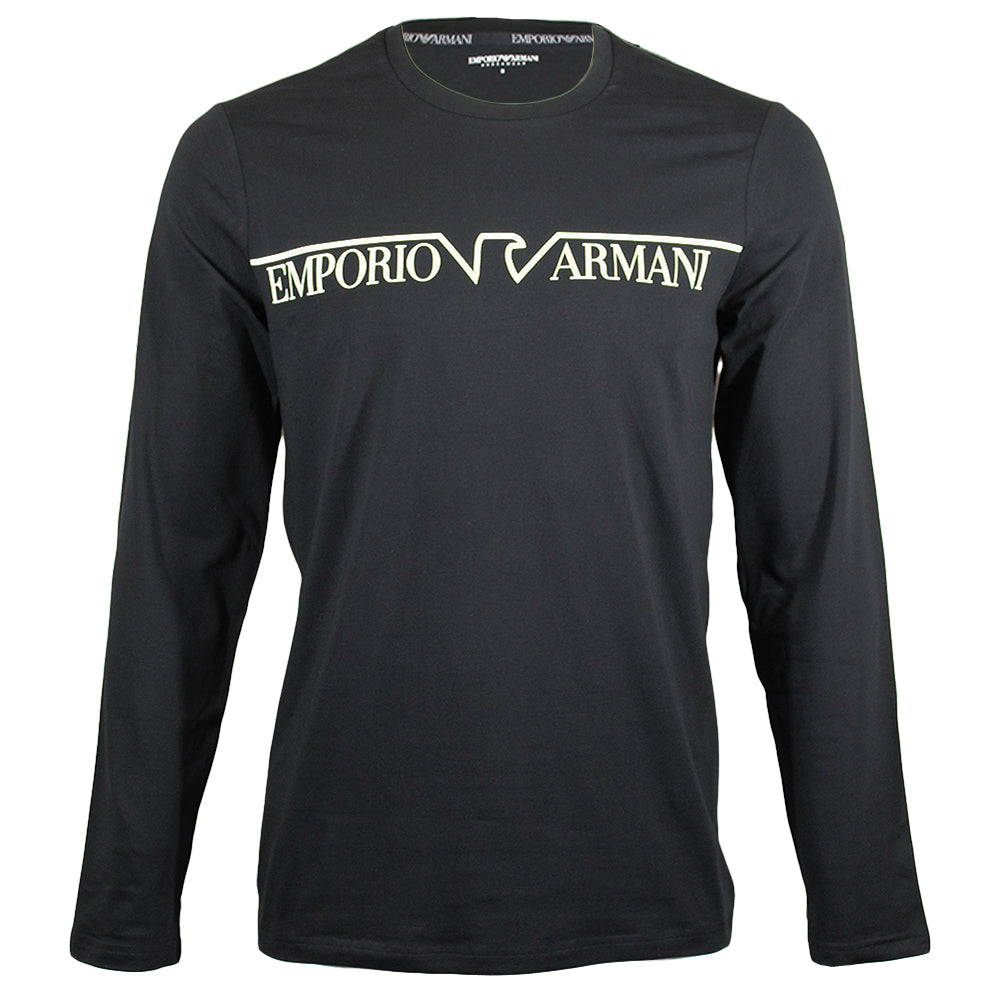 Emporio Armani Stretch Cotton Long Pyjama Set, Black