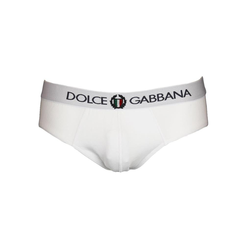Dolce & Gabbana Stretch Cotton Mid-Rise Briefs With Crest, Optical White
