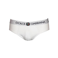 A cotton stretch mid-rise brief by Dolce & Gabbana with Crest, in white
