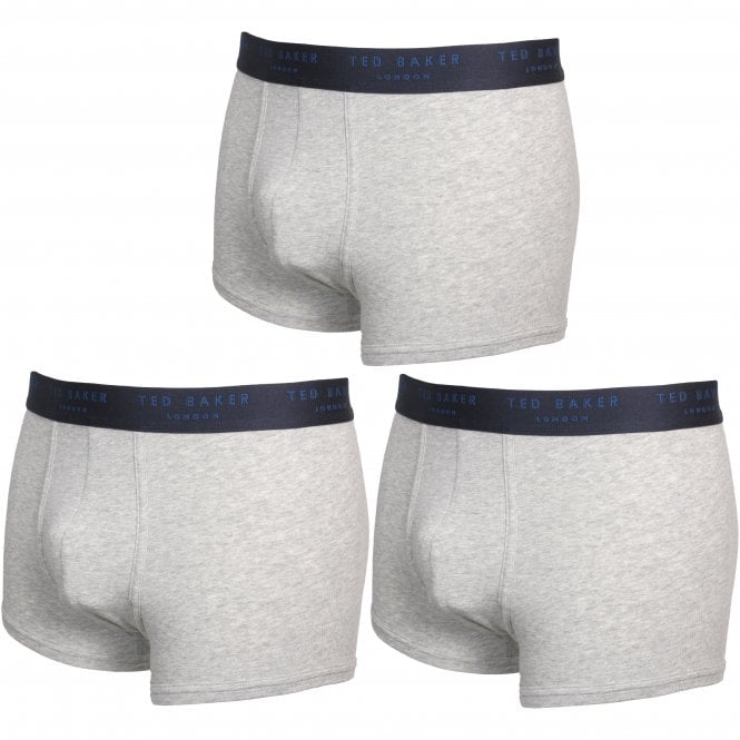 3-Pack Contrast Logo Waistband Boxer Trunks, Heather Grey