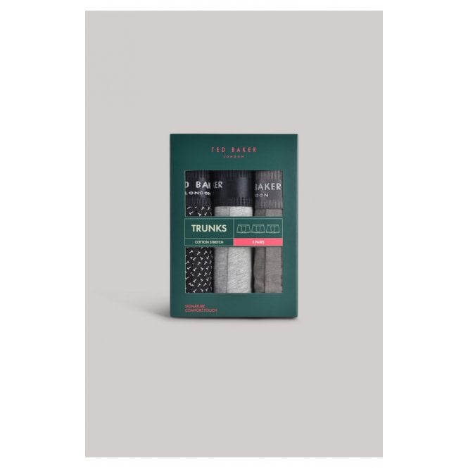 Ted Baker 3-Pack Cotton Stretch Boxer Trunks, Black, Floral, Grey/Black