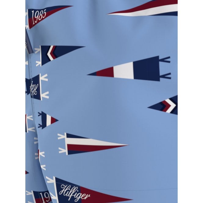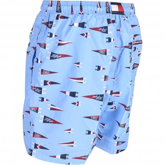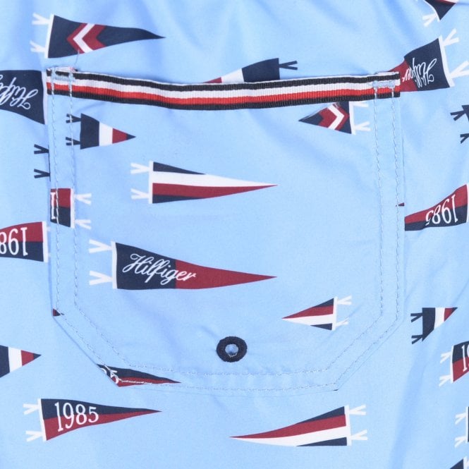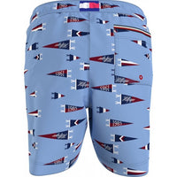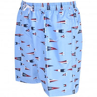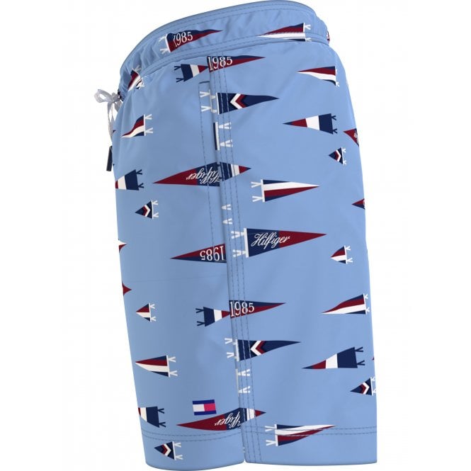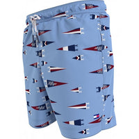 Pennant Print Boys Swim Shorts, Oxford Blue