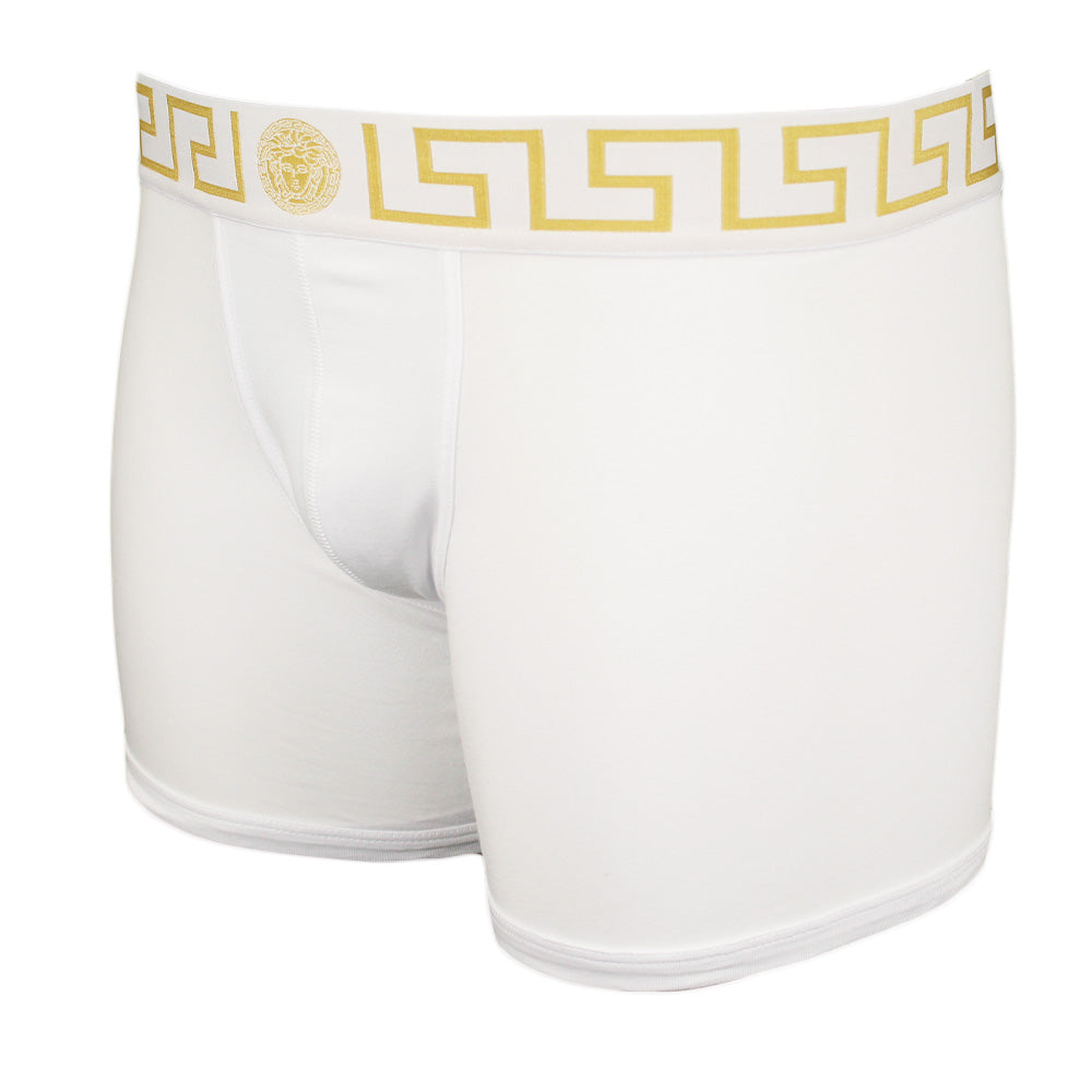 A set of 2 cotton low rise long trunks featuring the Greca border and a central Medusa motifs on the elasticated waistband. For hygiene purposes we advise to try on this item with personal underwear underneath.