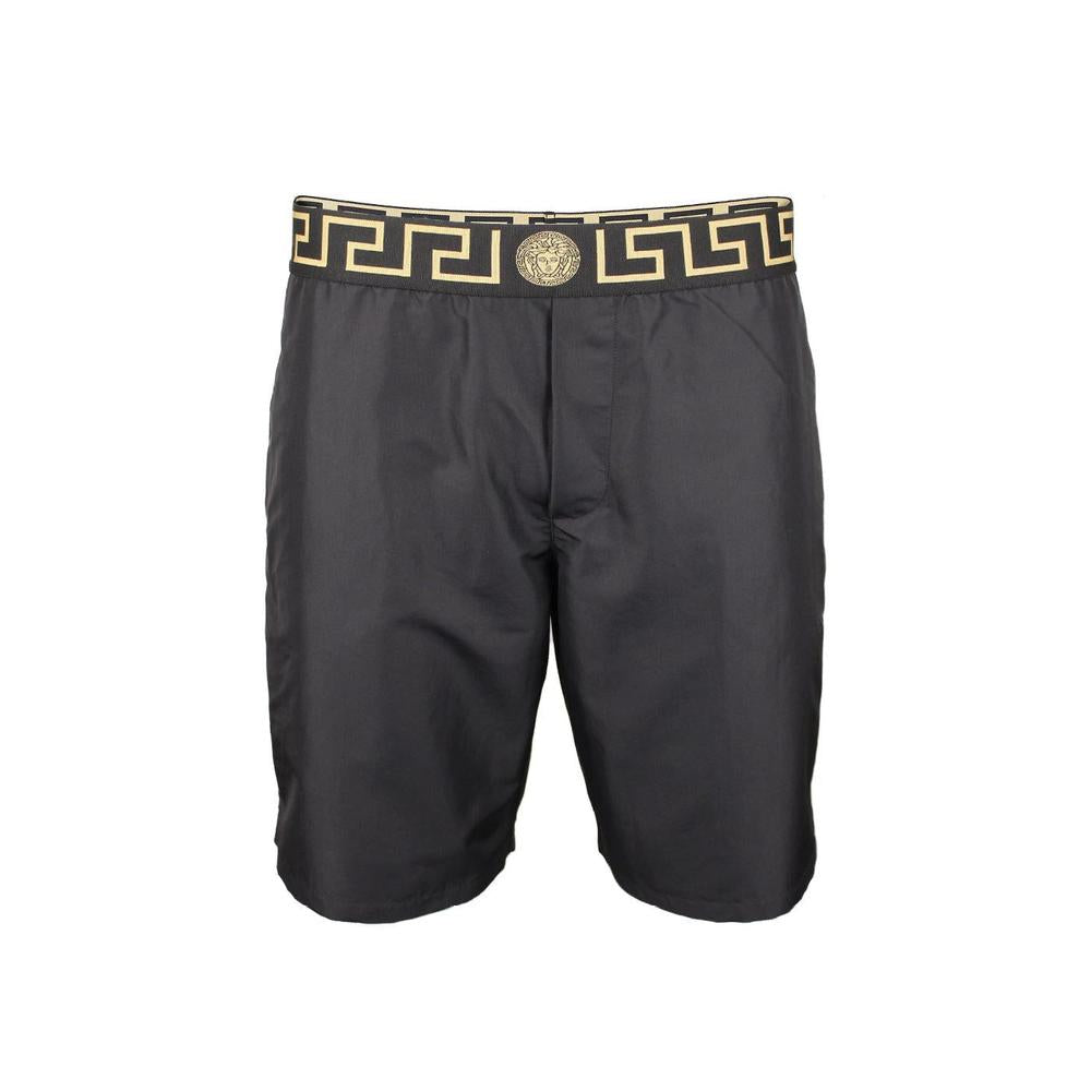 These boardshorts feature the signature Greca border with a central Medusa motif on the elastic waistband. The swimwear style falls above the knee in a straight, tapered fit.